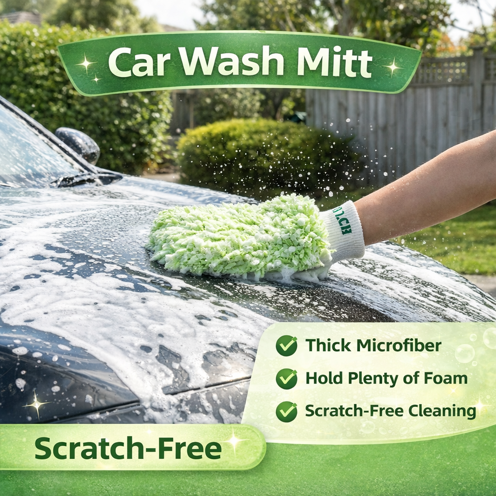Available in green, this car wash mitt combines comfort, efficiency, and protection. It is perfect for professionals and car enthusiasts alike. Keep your vehicle spotless and shiny with this durable, easy-to-use mitt.