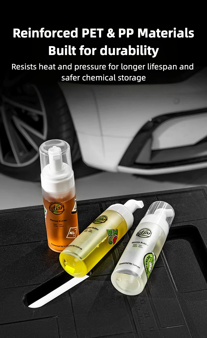 This foam spray bottle combines a PET bottle body with a PP pump head and cap, delivering excellent wear resistance and chemical durability. Its lightweight design also ensures comfortable handling during extended cleaning sessions.
