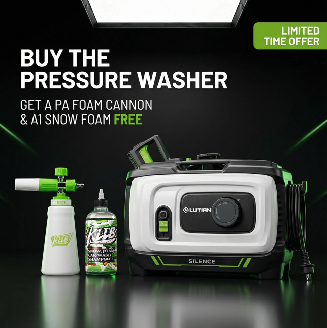 Buy the pressure washer now and get a PA Foam Cannon and A1 Snow Foam FREE — everything you need to start snow foam washing immediately.